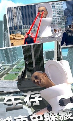 《马桶人模拟器2》是一款非常好玩的休闲冒险游戏,最近厕所侠的形象可以说是非常火爆了,我们需要在每一款游戏中打败厕所侠,但是在小编带来的这款游戏中我们都是玩厕所侠来玩的游戏,你将扮演一个厕所侠,体验充满惊喜和挑战的生活。新的游戏机制和丰富的任务系统允许玩家升级角色并解锁更多游戏内容。