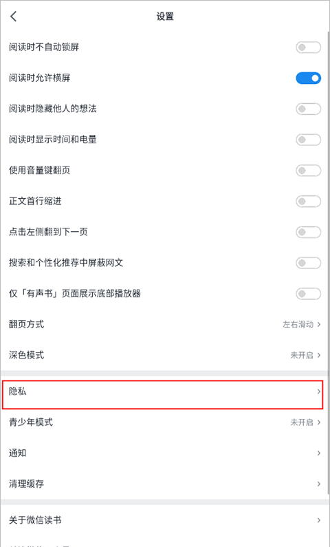 3、在隐私界面点击“私密阅读”右侧的开关即可进行设置啦,还可以通过设置“替身书架”来提升你的阅读体验!