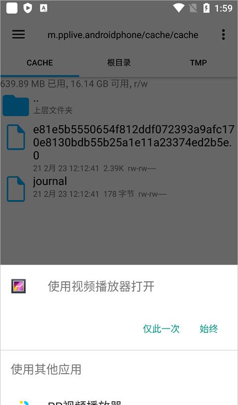 用户进入这个文件夹中,可以看到两个文件夹 cache 和 files ,这两个文件夹中分别保存了缓存视频的片断,注意只是片断,很多片断不能播放的,