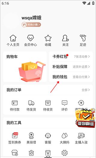 2、点击“我的钱包”。