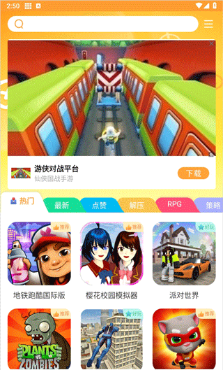 2、当然还有各种热门游戏,如地铁跑酷、樱花校园模拟器、植物大战僵尸等游戏任你选;