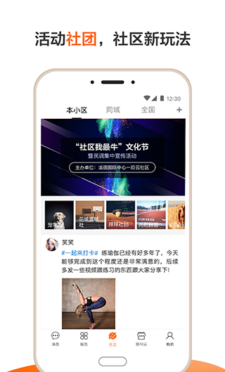 4、进入社区区,查看小区各种动态信息,在线分享生活动态,培养健康生活习惯。