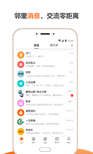 2、检查各种未读信息的内容,与邻居在线交流,并快速了解最新的社区通知和公告。