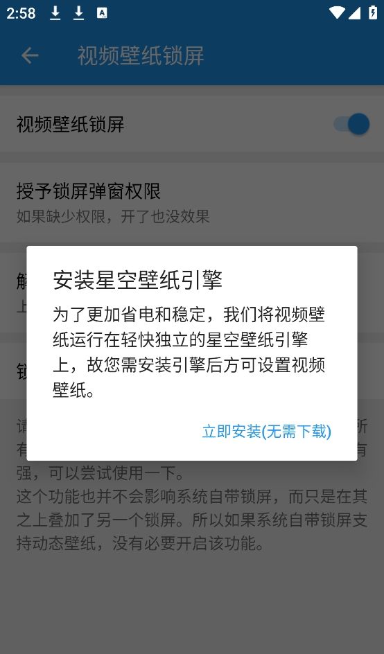 5、点击视频壁纸锁屏,安卓星空壁纸引擎后即可设置锁屏壁纸