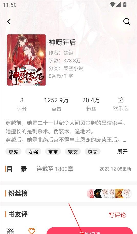 2、进入小说的详细信息页面,点击开始阅读按钮。