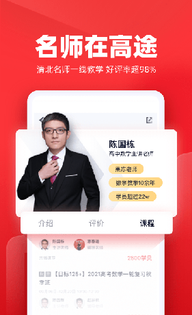 高途课堂app是一款非常有用的在线学习辅助软件。软件专注于中小学在线辅导服务,集中多年在教育领域的经验和完善的教学服务体系,汇聚最优秀的老师,组建专业的辅导老师团队,致力于为3至18岁的孩子提供优质的教学产品和服务。深入分析全国数千万中小学生的实际学习情况和辅导需求,可为用户提供小学、初中、高中各科在线直播课程,并拥有直播课程、精品微课、图片搜索、学习交流等多项特色功能。所有资讯课程均可与官网同步更新,让孩子不受任何时空限制,实时在线学习,轻松提升成绩。