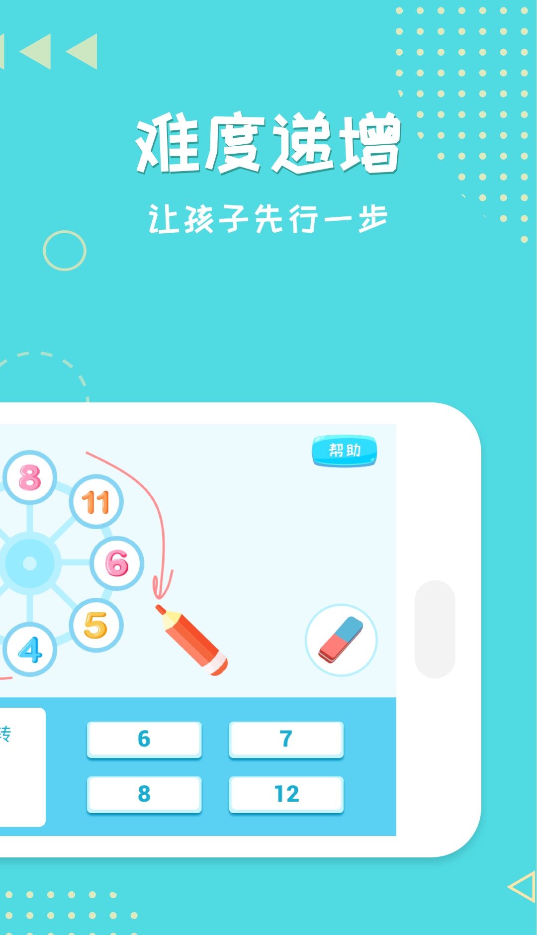 进行趣味性的脑力开发,给你的孩子更多的可能性。提高儿童对数字的敏感程度、抵消孩子对数学的抵抗程度。让孩子赢在起跑线上,快乐学习,是我们和家长们的共同祝福。
