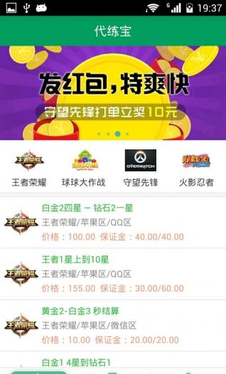 1、代练宝是目前国内专业的游戏代练平台,为代练打手接单提供优质的平台和服务。