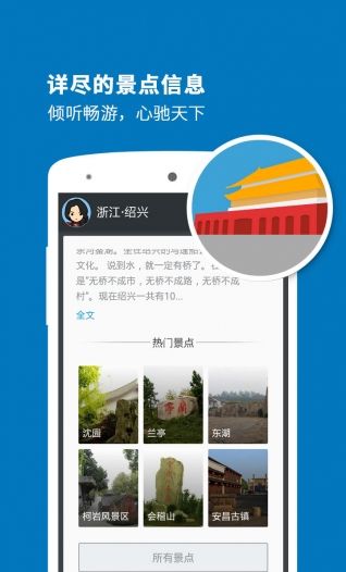 听游绍兴,智能语音导游系统,携手科大讯飞,带给您独特的绍兴印象。