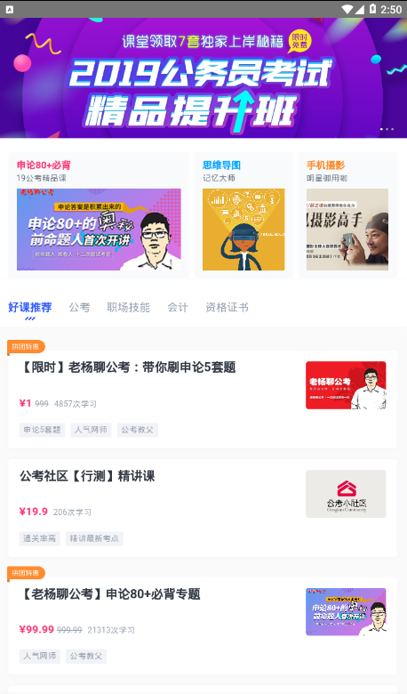 2、海量好课免费学:海量免费资料、直播和进阶课资源,超多课程优惠券等你领,力度领先全行业!公考入门必备,学习无负担!