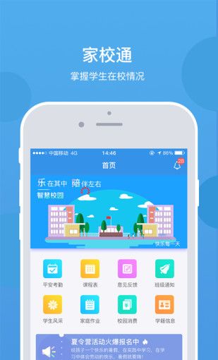 4、校园考勤、消费账单实时查询,家校互通等应用。