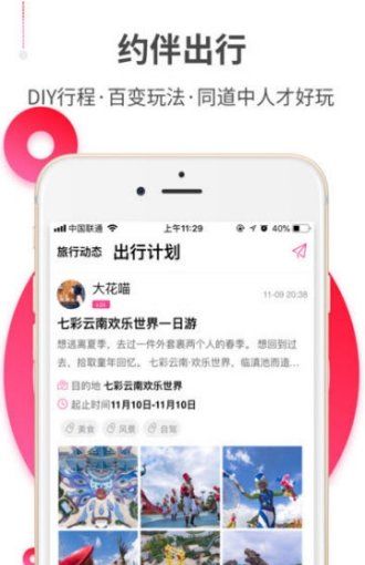 2、游客可以通过约伴出行,联系到对旅游目的地衣食住行游购娱等旅游信息非常了解的导游及当地达人帮你制定旅游线路。