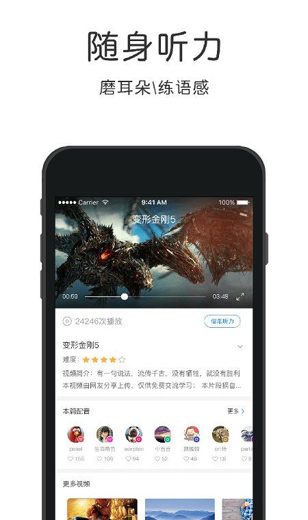 3、文字、视频等多媒体阅读体验,边看边听边读,全面提升你的听说读技能。