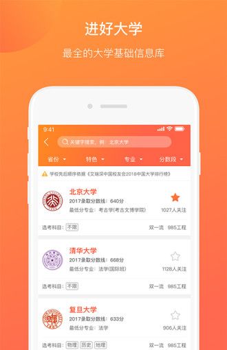 优彼致愿app专为高中生们打造的手机软件。在优彼致愿app中你可快速查询院校相关信息,浏览其专业介绍,一键查阅各大高校历年学校及专业分数线等。