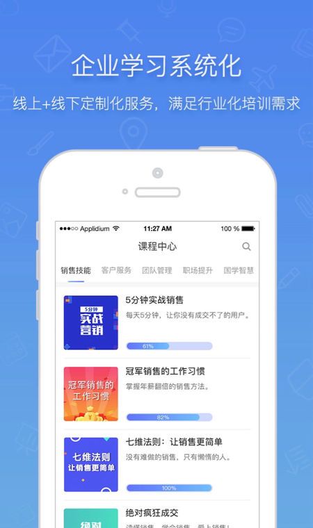 3、企业学习系统化:线上+线下定制化服务,满足行业化培训需求;