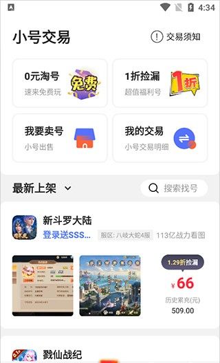4、交易页面提供海量游戏账号的手机交易平台