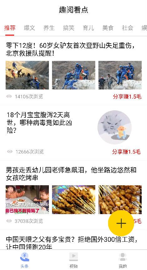 1、热门资讯:搞笑、娱乐、养生、育儿各种看点应有尽有。