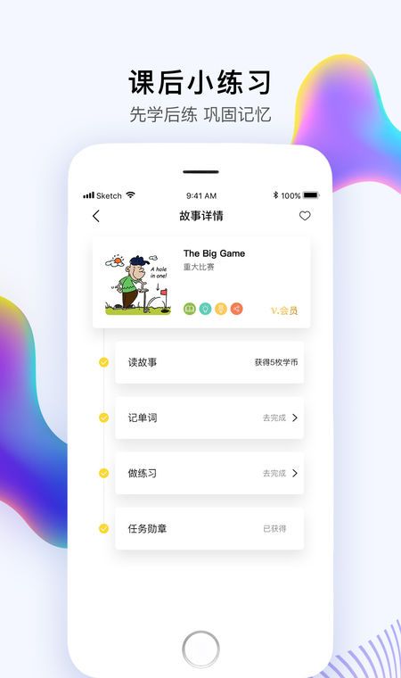 1、阅读中心:在这里,你可以看到收藏的小故事、订阅的故事集、实时查看学习记录。不要忘了,还有生词本哦,让你在轻松的氛围中收获学习的乐趣。