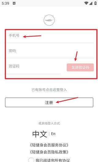 2、输入您的手机号码,设置密码,获取验证码。确认协议后,点击“注册”完成账号创建。