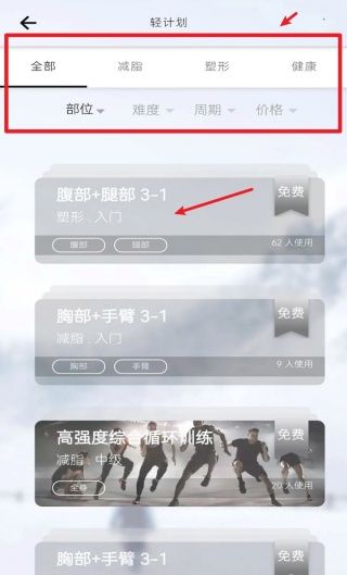 5、根据你的健身目标筛选课程标签。点击任何课程卡查看详细信息并开始您的培训计划。