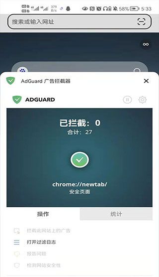 5、随即打开adguard广告拦截器,可以轻松拦截网页中的广告。