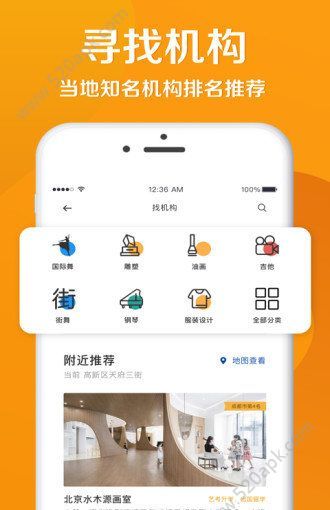 4、通过不同的分类,查看喜欢艺术培训机构排行。