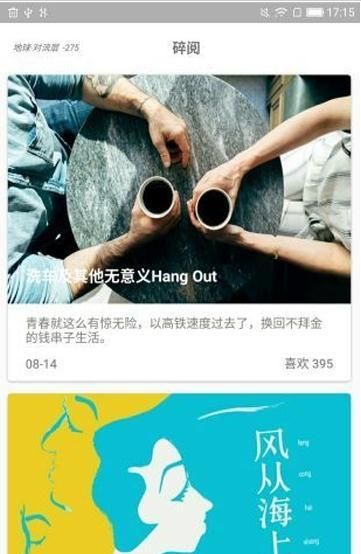 阅读是一件幸福的事情,不仅可以消磨自己的时光,沉醉在知识的海洋里,而且还可以陶冶自己的情操,让自己枯燥的生活充满着乐趣!《时光碎阅》是一款资源丰富的手机阅读软件,在这款软件中,用户可以看到自己感兴趣的文章,让你的无聊生活有一些点缀!感兴趣的小伙伴赶快来下载体验吧!