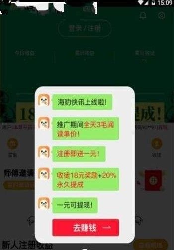海豹新闻是一款非常实用的手机阅读赚钱app,这里有各种各样的新闻资讯,像头条新闻、搞笑段子、热点资讯、娱乐新闻等,你想看的这里都能找到。重要的是,在这里,可以一边阅读一边赚钱,,新人注册,可以马上获得奖励。你可以在线收徒,收到的徒弟越多,赚的钱越多,还能获得分红奖励。让你不用费时间,轻轻松松赚钱。