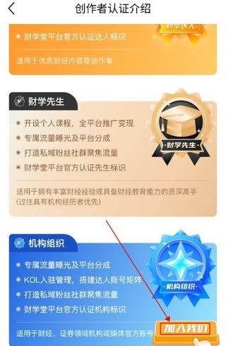 2、然后用户就可以进入认证介绍界面,点击右下角的“加入我们”。
