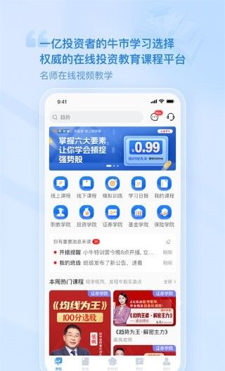 财学堂是一款投资教育软件,以传承投资智慧、播种希望为办学宗旨,始终秉承 “传承投资智慧 ”的核心价值观,致力于让每一位学员都能成为合格的投资者。财学堂APP在教学中心设置了宏观解读、行业研究、交易技巧、风险控制和投资心理五大课程体系,涵盖投资的各个领域,为学员提供全方位、多维度的投资教育服务。