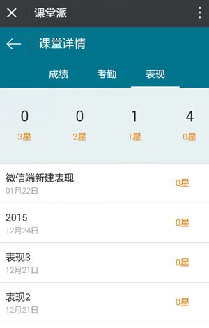 4、在表现模块,显示每次表现的状态,并统计出学生3星,2星,1星,0星的次数。