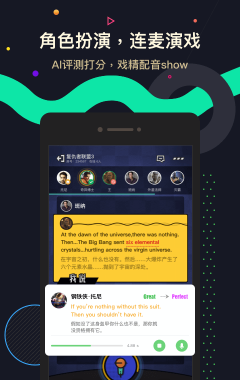 来交流电app演戏说英语,专业AI评测纠音,回顾录音易复习。