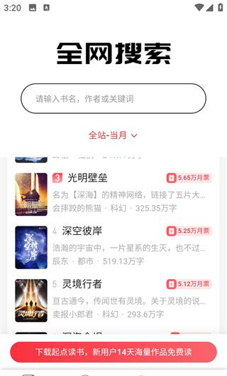 1、全网搜索网络小说。不仅可以按作者筛选,还可以通过关键词精准定位您的小说需求。