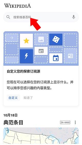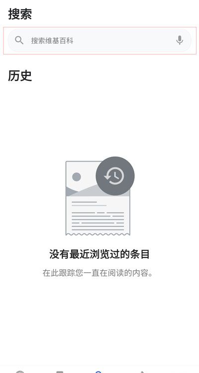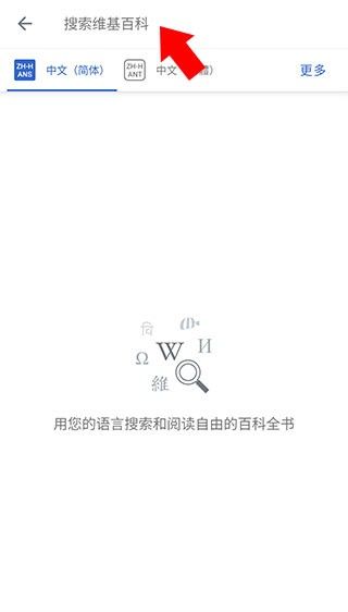1、下载并打开维基百科app,点击上方的搜索,进入搜索界面