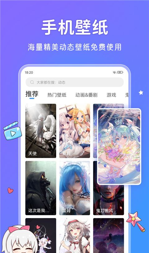 UPUPOO是一款手机桌面更换软件,不仅拥有海量高清动态壁纸,无论是二次元、卡通动漫、游戏,还是影视、萌宠、明星等等各类视频桌面资源任你选择,还新增了一键发布壁纸、点赞和分享功能,让手机版的用户拥有更多的壁纸,保证满足各类用户的需求,同时还提供了丰富的设置和个性化选项,用户可以按照自己的喜好来对桌面壁纸进行调整,比如可以设定不同的动画效果、设置壁纸切换的频率、改变不透明度等等,让我们的电脑桌面变得更加舒适和个性化。