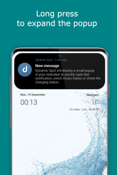 这使得它更容易获得最近的通知或手机状态的变化。只需单击黑色弹出窗口打开显示的应用程序。长按弹出窗口展开并查看更多详细信息。