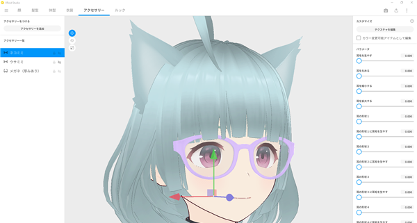 正式版搭载了“眼镜”、“猫耳”、“usamimi”等任意数量的配饰,可以自由穿脱的功能。您可以通过调整形状、长度和圆度等 10 多个参数来自由更改形状。我们计划在未来添加各种配件。