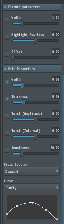 Width是一束头发的宽度,Thickness是厚度,这两项决定你画出来的这撮头发的总粗细。
