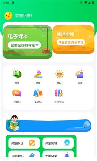 1、首先,打开七彩课堂课件免费下载app,进入首页,点击【电子教材】。