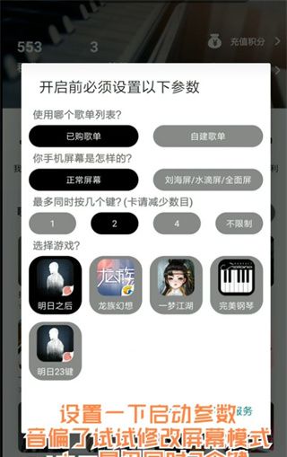 4、浮动窗口显示功能:支持钢琴键盘和乐谱在游戏界面上的浮动显示,实现瀑布功能,让玩家在玩游戏的同时轻松把握弹奏节奏。