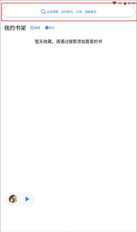 1、打开app并默认进入到【书架】界面,在上方的搜索框中输入关键词搜书。