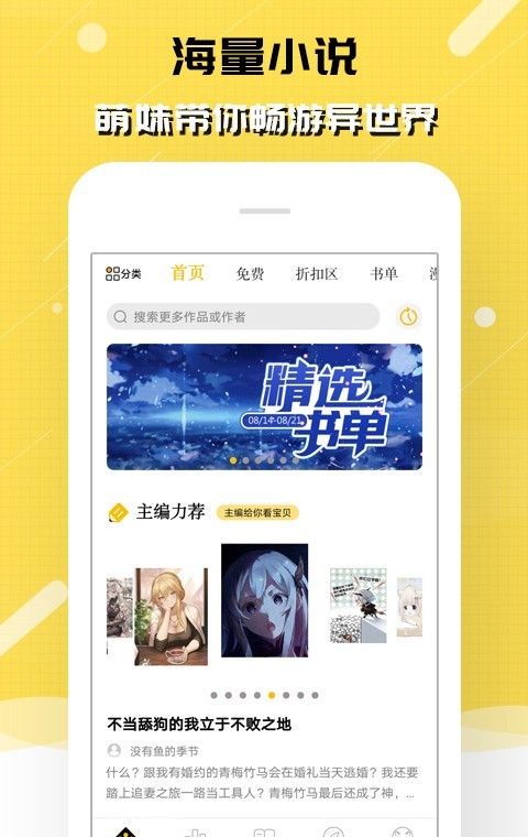 用户可以在此栏中搜索他们感兴趣的作者和作品,或者根据不同的推荐和图书列表找到他们想读的书。