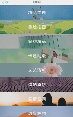 2、在主题这里,有精品主题、手绘插画、简约精品、卡通漫画、文艺清新等多种主题;