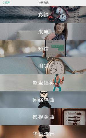 5、点开铃声,有彩铃、来电、短信、闹钟、整蛊搞笑、网络神曲等各种类型的铃声。