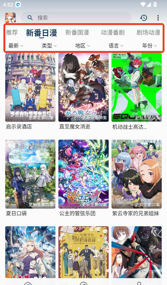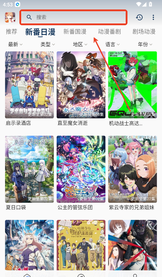 2.如果你有特定的动漫要看,可以使用顶部的搜索框,输入动漫名称进行搜索。