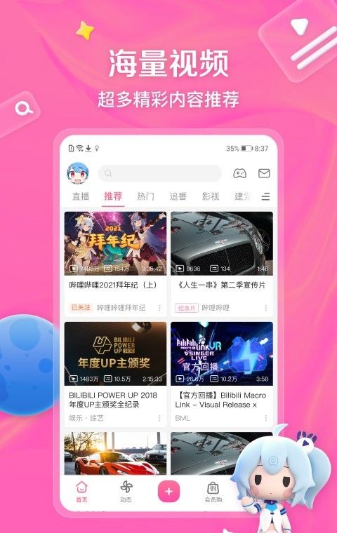 个性化推荐:哔哩哔哩根据用户的兴趣偏好推荐相关的视频内容,用户可以更快地找到感兴趣的内容,节省浏览时间。