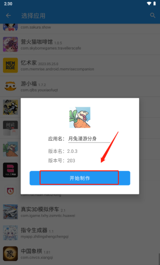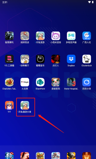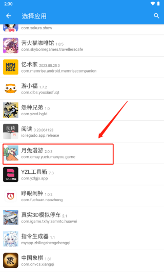 2、即可进入查看手机所有应用软件,随机选择你想要分身的软件,如小编选的游戏“月兔漫游”