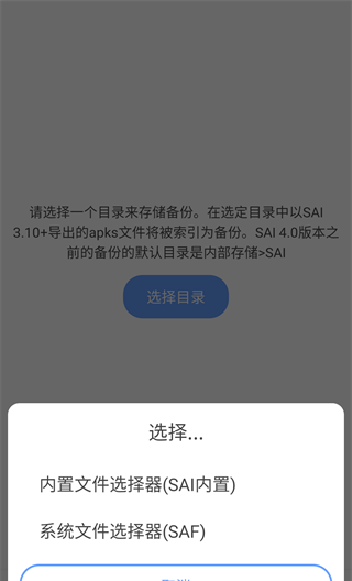 长按“选择”使用系统文件选择器(SAF),而不是SAI内置选择器。