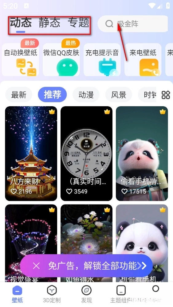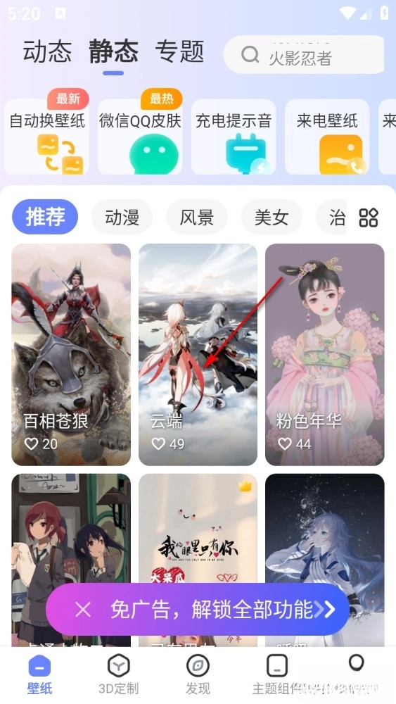1、进入软件后,在类别中搜索或找到您最喜欢的壁纸。