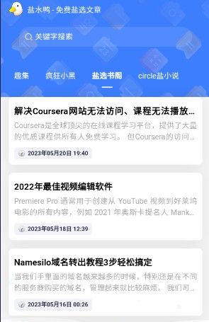 盐水鸭是一款提供优质小说的阅读软件,软件界面设计简洁、体积小巧,收录了知乎盐选文章,包括不同题材小说,比如言情、武侠、穿越等题材,满足不同用户喜好。并且软件提供多种数据源,包括"盐选书阁"、"趣集"、"circle盐小说"等数据源,用户可以随时切换阅读,同时用户还可以收藏喜欢的文章和小说,方便后续阅读。欢迎有需要的小伙伴们前来下载使用!